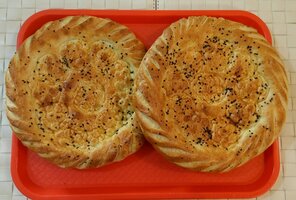 Киоск сытной узбекской и азербайджанской выпечки — таких на рынке несколько, но этот самый популярный. Продают чебуреки, сразу несколько видов самсы — с телятиной, сыром или курицей, солёные булочки шор гогал и лепёшки катлама из пресного теста, которые пекут за минуту на ваших глазах.
