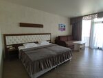 Полулюкс №4 с балконом. Этот элегантный номер сочетает в себе современные удобства и стильный дизайн в спокойных, нейтральных тонах. Просторное помещение наполнено естественным светом благодаря панорамным окнам, которые ведут на уютный балкон с в...
