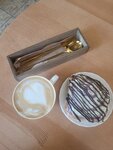 Давно не была в городе и была приятно удивлена зайдя в эту кофейню. Уютно, стильно, есть выбор и по выпечке и по дессертам) приятный общительный бариста) В зале есть розетки, можно зарядить телефон/ноутбук. Чистый туалет. Вкусный флэт, синабон (120р) - такой большой, что я его не смогла доесть.