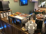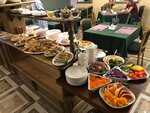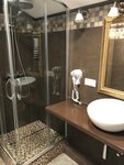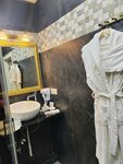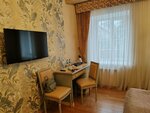 Отель расположен в 10 минутах пешком от центра на тихой улочке среди малоэтажной деревянной застройки и выглядит как совсем свеженький, никаких разбитых плиток, сколов, трещин, пятен и т.д. На втором этаже целая картинная галерея (картины продаются и ценники висят рядом с каждой). На фото справа видна единственная на отель гладильная доска, которая почему-то находится здесь среди картин и роскошной мебели, и на которой можно гладить только здесь (в номер брать нельзя). Я бронировал одноместный номер Стандарт Мансарда на третьем этаже. Правда, уже на входе столкнулся с необычным замком - он открывается ключом не по часовой стрелке, а наоборот, как обычно закрывают. Спустился на ресепшн, там объяснили, что так во всех номерах. Но тогда стоило бы сразу предупреждать всех заселяющихся в номера еще на ресепшене, а то ведь не все могут открыть. Номер чистый. Есть одноразовые тапочки. На окне есть жалюзи, но с раннего утра все равно будет светло. Подушки и матрас не очень толстые, немного ощущаются как "пустые" внутри. Выключатели освещения почему-то только при входе в номер и над изголовьем кровати. Впервые вижу такой мощный скос крыши в мансардном этаже, людям ростом 180 см можно не наклоняясь ходить только в прихожей, вдоль стены со столом и в ванной. Шкафа для одежды нет, а вешала тоже явно рассчитаны на лилипутов, даже мужская футболка не помещается по длине. Чай только черный и только в количестве одного пакетика. Попросил принести зеленый - один раз принесли, потом снова носили черный. Не очень удобно расположены розетки - они есть только за столом (причем очень низко - надо буквально залезать за стол с вытянутой рукой чтобы достать) и над изголовьем кровати, причем с той стороны, где нет тумбочки. Так что положить телефон для зарядки на тумбочку не получится. Кондиционирование работает, но вот вытяжка расположена странно - прямо над входом, от которого комната за углом. Очень сильно холодит как раз когда выходишь из душа. Интернет подключается в отеле тоже не так, как везде, где вы просто приходите в номер и вводите пароль. Надо прямо с ресепшена зайти на сайт отеля, позвонить на номер либо ввести индивидуальный код, который приходит сотруднице на ресепшен. Ловит Интернет на третьем этаже по-разному - иногда хорошо, иногда слабо, иногда вообще пропадает. Ванная - опять же, все новое, без сколов трещин и т. д. Полотенца чистейшие и меняют каждый день. Есть ванные принадлежности - зубной набор, гель, шампунь, ванная шапочка, мыло. Из минусов - очень странно переключаемый душ (слева кран для переключения между головками, справа - настройка температуры воды), так что всегда сначала будете стоять под холодной водой. И дверцы душа двигаются без "салазок", сильно отклоняясь внутрь, так что соединить без щели придется постараться. В отеле на цокольном этаже есть ресторан, где с 8:00 до 10:00 накрывают завтраки для жильцов. Еда не обновляется, так что лучше приходить раньше - в пол-десятого уже почти ничего не будет. Выбор еды довольно большой с упором в сторону выпечки - при мне там были мини-пицца, мини-чебуреки с сыром, хачапури с сыром и яйцом, блинчики с начинкой (опять же преимущественно из яйца), просто блины (рядом есть джем), не говоря уж про сладкую выпечку (песочный пирог с фруктовой начинкой, пирожные "Наполеон", "улитки" с корицей, круассаны и т. д.). Все свежее, г
