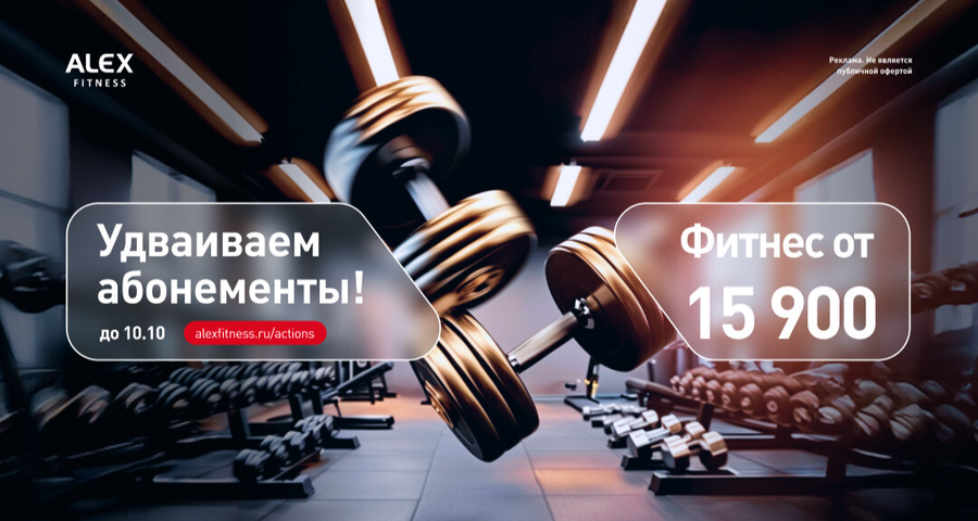 Удваиваем абонементы в ALEX FITNESS. Фитнес от 15900 ₽ до 10 октября