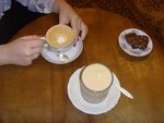 Вкусный кофе и шоколадный фондан. Интересная концепция интерьера со старой мебелью, но очень пыльно и соответствующий запах пыльных ковров. Если все это пропылесосить и освежить, то было бы очень даже приятно