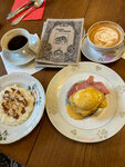 Очень удивилась уюту в этом кафе. Обычно в модных местах чувствую себя неуютно, а тут как будто окунулась в своё детство, но с поправкой на то, что с гдровских тарелок Kahla можно есть, да, и вообще есть разнообразная еда (в отличие от 90х). Завтраки тут целый день - это то что доктор прописал) и, ура, есть Бенедикт без лосося (с ветчиной). Кофе отличный, сбалансированный. В Бенедикте мне чего-то не хватило, он на 4ку, но поскольку не могу сформулировать чего именно - не считаю нужным портить оценку заведению. Парень бариста супер комфортный и приятный. Музыка специфическая, ретро, но мне она была гораздо приятнее, чем рэп или какой-нибудь андеграунд в других местах.