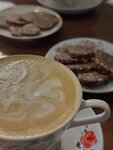 Ходила с ребёнком, супер место! Все в коврах, как будто к бабушке пришли, но к петербургской старушке с винтажной мебелью и домашней кондитеркой😍 ребёнка угостили сушками, носилась по коврам, все были очень добрые, детишке умилялись ❤️ Шоколадная колбаска не приторная и оооочень вкусная! Латте мягкий, не горчит 👍