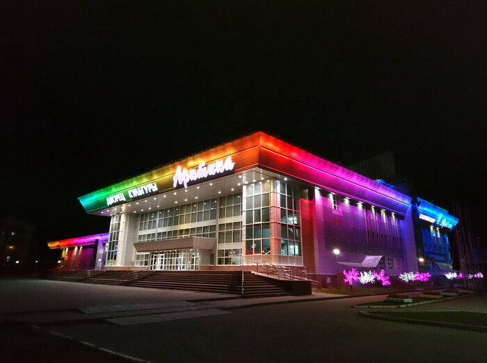 Дворец Культуры Арктика, Нарьян-Мар! Красиво! Внутри галлереи, искусство. Много входов. Современное здание, идёт ремонт, лавка сувениров прикрыта. Локация обязательна к посещению! У ДК шикарная площадь, ёлка, горки, Дед Мороз с внучкой и многое другое!