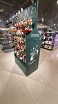 Магазин ок. Кафе тоже большое классное,но когда идет наплыв почитателей,это ужас,в ожидании проводишь 20 минут чтоб заказать,стала постоянно не убраны. Явно не хватка работников. Вижу это из-за дня в день данную картинку. Кофе очень вкусный,персонал отличной! Но видно,что не хватает рабочих рук!