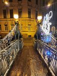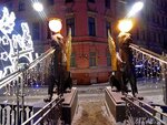 Прекрасный мост, любимый с детства. Но освещение практически отсутствует. Новогодний декор был абсолютно пахабный. Лепить на него какие-то китайские саночки с ангелочками, игнорируя всю сложность образов грифонов -- это фиаско. К сожалению, не у всех чиновников адекватное видение. Либо украшали по остаточному принципу, чем пришлось. Надеюсь, сделают адекватное освещение, которого он достоин.