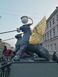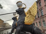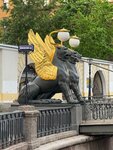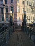 Пешеходный мост через канал Грибоедова. Его украшают четыре крылатых льва. Очень красивый мост.