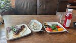 Очень вкусный плов (который не праздничный, не с изюмом) мясо в плове очень мягкое, ребёнок привередлив в еде, сьел с удовольствием, вкусное мясо и салат из помидор с луком. Хорошая посуда, подача, чисто.
