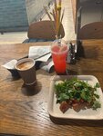 Как-то не ощутил уюта в этом заведении. Пробовал мясной салат (название не запомнить) и чай фруктовый - ничего особенного. Ещё неудобно сначала делать заказ и оплачивать на кассе, а потом с номером идти за столик. Если нужно ещё что-то заказать, то ещё раз нужно вставать из-за стола и идти к кассе. Цены средние по кафе. Наверное нужно пересмотреть концепцию с заказами.