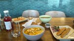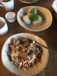 Симпатичный интерьер, вытяжка не всегда справляется, выходишь из заведения и вся одежда пахнет едой. Горячие напитки подают в пластиковых стаканах, попросила перелить кофе, подали в чашке без блюдца, вместо чайной ложки одноразовая деревянная палочка, но к десерту подали хорошие приборы. Кофе и десерт несли почти 15 минут, хотя в кафе всего 4 столика сидят. Странный сервис, но все что здесь пробовала было вкусно.