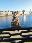 Одна из нескольких фигурок котят "Йошкиной котосемьи", раскиданных по городу. Очень увлекательный квест с поиском котят в городе, даже для взрослых путешественников. Милый Барсик с рыбой сидит на набережной Брюгге. Вечером его можно легко пропустить, фигурка небольшая)