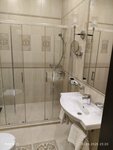 Бронировали двухместный номер, заселение стандартное-после 14:00, мы приехали раньше и нам предложили заселиться в другой свободный номер, за дополнительную оплату, но мы отказались. На ресепшене выдали электронный ключ, показали номер. В номере: шкаф-купе с полками, выдвижными ящиками и сейфом, платьевой шкаф. Принадлежности - ложечка для обуви, губка-блеск для обуви, швейный набор (игла и несколько разноцветных нитей, раньше мне не встречалась такая комплектация), два халата, две пары тапочек, тремпели. Ванная комната: большой умывальник, настенное зеркало с бра по бокам и зеркало круглое двухстороннее с увеличением и обычное, мыло, шампунь, гель для душа и лосьон для тела (ранее не встречал нигде), фен, душ-купе с настенным смесителем, набор полотенец (лицевое, банное, ножное), полотенцесушитель, унитаз с эффектом антивсплеск, возле унитаза смеситель с сифоном для личной гигиены (ранее не встречал нигде). Комната: стол письменный, с мини холодильником (но при выходе из номера холодильник выключается также как и все электроприборы), телевизор, электрочайник, чай кофе, чашечки, ложечки, сахар, две по 0.5 бутылки воды (воду для чайника можно набирать из крана, так мне сказали), один стул (хотя номер двухместный), в ящике стола, список тв каналов, инструкция по пожарной безопасности , список мест в Ростове , которые можно посетить ( ранее не встречал нигде), кондиционер, кровать двухспальная с белым постельным бельём мягкая и приятная, одеяло, 4 подушки. Завтраки: с 7:30 до 10:00, кухня вкусная, гарниры, салаты, горячие блюда, напитки, фрукты и т.д. Бассейн: этот объект заслуживает особого внимания так как в пик жары это блаженство поплавать в бассейне. Бассейн большой, глубина 1.4м., в нем более трёх видов гидромассажа, мягкие эезлонги с зонтами и навесами, раздевалки, душевые, туалеты возле бассейна, летний бар. Полотенца выдают сотрудники гостиницы, на ресепшене нам одеваю на запястье непромокаемый браслет и по нему понятно что это гости отеля. Территория чистая, красивая, есть автостоянка. Фотозоны есть но их не много.