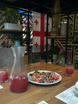 A good restaurant with generous portions! Only here we found khachapuri with spinach, very tasty and satisfying! The meat is also very juicy and soft. The staff is friendly, will tell you some menu items, will help you with the choice. The restaurant itself is divided into three zones: the third floor is a glass-walled terrace, the second is a closed room for a more romantic atmosphere, and the first is similar to the atmosphere of a bar. Therefore, everyone will find something of their own! Also keep in mind that there is a 10% discount on the receipt (tips, but they are worth it!) I highly recommend you to visit!
