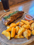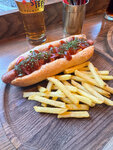 Заведение находится на центральной улице)) Честно говоря, если бы не отличные отзывы мы наверное бы не зашли, так как интерьер совсем неприметный, да и заведение прям очень камерное)) НО…. Тут ОООЧЕНЬ вкусно оказалось ))) Прям очень) Я взяла себе хот-дог… обалдела от его размера 🤣 мне такого на весь день хватит ) очень вкусная , хрустящая булочка, сосиска прям мясная .. огонь, а лучок то как идеально замаринован🔥 Муж пробовал ребрышки.. тоже был очень приятно удивлен… приготовлены как нужно, мясо прям моментально слезало с кости 🫰🤤🤤🤤 очень вкусное, нежное 🔥 Порции огромные 🧡 Пиво у данного заведения от собственной пивоварни, тоже очень достойно внимания🫰 Заведение 10 из 10)) Так же делаюсь местами в своём Телеграм канале, называется - Возьми меня в Калининград 🧡