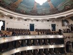 Решили не" бежать" сразу в зрительный зал как обычно,опаздывая,а спокойно рассмотреть интерьеры.Театр графа Апраксина,на его землях))Богатейший человек своего времени .И театр по его вкусу и достатку.Экспозиция ,а скорее музей в просторных холлах театра.С восхищением смотрели эскизы костюмов,макеты декораций,сами костюмы.Петров-Водкин,Акимов,Бенуа,Кустодиев и многие другие оформляли постановки.Фотографии великих актеров из современной истории театра.Не каждый театр может показать нам,зрителям такую экспозицию о своей истории.Представлено бережно и с любовью к прошлому театра.Рассмотрели с удовольствием и интересом.А потом в зал.Он безусловно хорош,с царской ложей!Очень торжественный и особенный театр в городе.