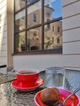 Приятно посидеть в тишине во дворах Капеллы недалеко от оживлённого туристического Невского проспекта, выпить чашечку кофе с вкусным десертом (я взяла ром бабу, пропитанную лимончелло). Если погода солнечная и тёплая, то можно насладиться кофе на улице. Девушка, продавец и официант в одном лице, была очень милая и дружелюбная. Кофе и десерт тоже понравились.