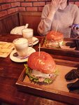 Довольно уютное и приятное место, где можно поесть действительно вкусные бургеры, соперников которым найти даже в крупных городах порой трудновато. Бургеры реально сытные, и более того достойные, к ним вдобавок могут пойти еще и добротные закуски в панировке, соусы и прочее, однако ценник в какой-то степени здесь кусается, поэтому думайте на свое усмотрение, есть ли у вас желание наесться за 1к рублей. Если готовы - уверен, здесь вы сможете достойно насытиться на эти деньги. Присутствуют, правда, еще парочка «но»: время ожидания (40 минут, вы серьезно?), и невозможность оплачивать заказ QR - телефон с собой есть всегда, а вот карточка или наличка нет. Да и персонал по отсутствию qr-оплаты не очень приятно реагировал, по сути чуть не отправив нас без еды.