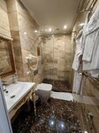 Ночевали всего одну ночь в номере люкс. Мне понравился номер: большой, хорошая кровать, мягкие полотенца, есть банные халаты и тапочки. Были с ребенком. Комплект постельного белья выдали дополнительно. Комплект полотенец дополнительный+1500, но на 2 человека их у нас было уже 8 штук, так что справились без дополнительного комплекта. Звезду сняла за обслуживание в кафе на завтрак. Перепутали заказ, пришлось ждать, когда принесут все-таки наш завтрак и омлет был сыроват.