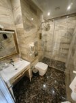 Оставались в гостинице на одну ночь,рядом есть небольшая парковка. Отель выглядит очень богато и красиво! Номер шикарный, есть чай кофе, но единственное нету чайника, но это не проблема, т к рядом с ресепшеном есть кулер с горячей и холодной водой. В номере есть халаты, гели, шампуни, зубные щётки. Фен, телик и кондиционер работают👍 Завтрак вкусный, принесли за 5 минут. Вообщем всё отлично!