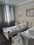 2 дня проживали в гостинице. Завтрак входит в оплату: надо заказать на 600 рублей (на двоих) на 1 раз поесть. На 600 рублей это практически весь перечень меню. Мы проживали на 2-м этаже в 17-м номере (для новобрачных), т.к.других не было 😊. Прямо под нами 3 прста для мойки машин (мойка в самом здании гостиницы).... наверное, рядом находящиеся номера тоже"зацепило". Хоть мойка работала не так часто, но включение моечного оборудования, влекущее за собой шум и вибрацию, несёт за собой приличный дискомфорт (для меня это очень большой минус). Шум от дороги под окнами дискомфорта не вызывал. Рядом с гостиницей магазин КБ (50 метров)!!! До центра города 2 остановки на общественном транспорте. В номерах чисто, вот только бельё застиранное (даже дырочки есть😊). WI-FI ловит хорошо. Кондиционер не проверял. Халатики, полотенца, тапочки - чистые, беленькие; чайничек, сейф, холодильник, телек, светильники - всё работает.