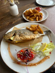 Сложное место. Не просто найти, ещё сложнее дойти, особенно в дождь. Но это временно, пока идёт строительство набережной. Зато само помещение уютное, просторное, светлое, с видом на море. Много воздуха и света. И шикарная живая натуральная кухня. Местная камбала на высоте. Калкан в сливочном соусе с морепродуктами - наслаждалась каждым кусочком. Порции приятные, подача симпатичная, обслуживание быстрое, на должном уровне. Официанты приветливы, интересуются, понравилось ли блюдо. Это приятно. Цены высоковаты, но и еда хороша