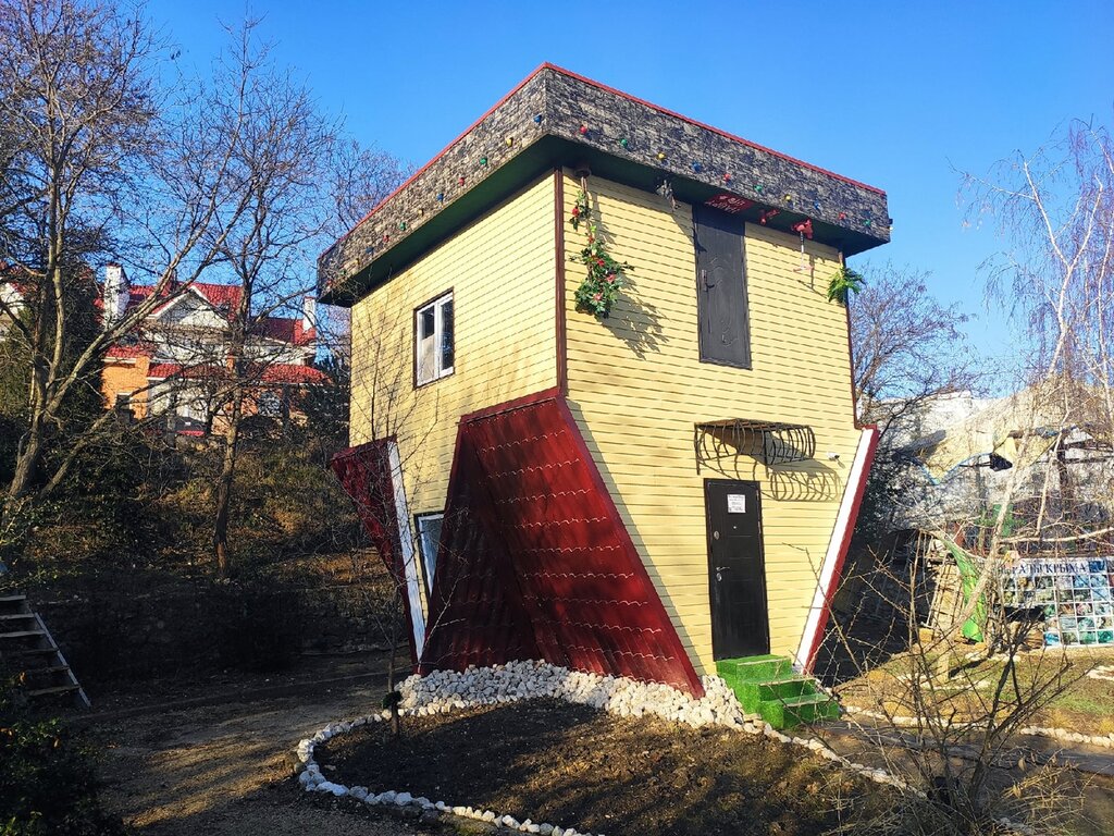Во время отпуска в г. Севастополе посетили замечательный парк "Лукоморье", где есть замечательный аттракцион "Дом вверх дном ".Детям очень понравилось, всё исследовали. В доме 2 этажа, всё перевёрнуто, на втором этаже нужно нажать на кнопки, тогда раздадутся разные звуки или голоса. Стоимость небольшая при учёте того, что посещение безлимитное)