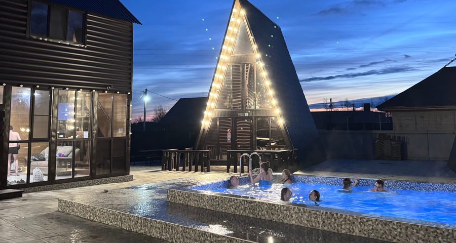 Сегодня посетили эту замечательную базу отдыха с дневным посещением — прекрасное место для семейного досуга! Первое впечатление произвёл уютный дизайн территории: яркие и необычные домики-треугольники создают особую атмосферу комфорта и оригинальности. Особое внимание заслуживает тёплый бассейн — идеальное решение для жаркого дня, а удобные шезлонги позволяют расслабиться и насладиться солнцем. Для детей предусмотрена отличная игровая площадка, где малыши найдут себе занятие по душе, пока родители отдыхают поблизости. Отдельно хочется отметить горячий чан — отличный способ снять стресс и зарядиться энергией после насыщенного дня. Одним словом, база отдыха стала настоящим открытием и оставила массу приятных впечатлений!