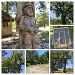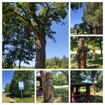 A cozy and well-equipped place, it's nice to touch the history and relax on the way, although there is a signpost almost at the turn to the landmark. The oak looks impressive from a distance, with cuts and wounds visible up close. There are two gazebos, wooden sculptures, an active well, and sanitary facilities in the distance.