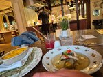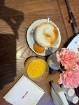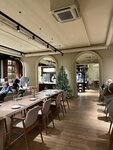 Я редко оставляю отзывы, но ребята сами просят обратную связь, поэтому я решила написать, ведь сама много лет проработала в этой сфере… Первое впечатление очень приятное, нас встретили, раздели, посадили, всё как полагается 👌🏼 сразу хочу отметить что мы были с малышкой и нас посадили за стол рядом с небольшим детским уголком, где наш ребёнок с удовольствием играл 👍🏼 также , дали милую раскраску с карандашами 🎀 следующий момент тоже касается детей, в уборной есть лесенка, чтобы ребенку можно было легко помыть руки, а не напрягаться - держать одной рукой, а другой мыть, не во всех заведениях это есть и я считаю что это тоже очень предусмотрительно 👌🏼 современный интерьер, открытая кухня, меню мы не смогли оценить по достоинству, поскольку зашли выпить чая, но ваши бриоши выше всяких похвал 👌🏼 а вот десерты мы не оценили от слова совсем… на мой взгляд очень посредственный манник и второй десерт тоже не впечатлил, за это лишь снимаю звезду, в остальном все было замечательно ❤️ обязательно придём как-нибудь поужинать полноценно 👌🏼