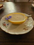 Отличное расположение, красивая посуда, интересное меню. Из минусов дорого. Я брала севиче, очень неплохое. Девушка посоветовала взять к нему луковый хлеб. Не впечатлил он меня. В принципе, луковый хлеб на любителя. У него специфические вкус и аромат. Но надо предупреждать, что его будет так много. Толстые ломти хлеба, аж 4 штуки и к нему огромный кусок масла, просто чудовищный для одной порции. Масло взбитое и сплюснутое на доске, с которой при подаче его снимают в круг ножом. Мне бы такого куска хватило на неделю. И да, оно абсолютно безвкусное.