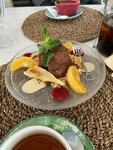 Мы были семьей в понедельник, ощущение сложилось, что ресторан в этот день никого не ждал. Много блюд на стопе, официанта искали сами, столик и стулья протирали себе сами (сели на веранде). Блюда все на тройку. Детей покормили самых последних, хотя взрослым вынесли уже по два курса. Коктейли вкуснее в кафе при пляже, чем в ресторане. В туалете была жуткая грязь.