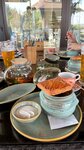 Место атмосферное. Фирменное блюдо -Ёлеброд (пивной крем суп с беконом в хлебе с сырными сухарями) попробовать не удалось ( его почему -то не было ), хотя вроде именно им завлекают . Интерьер красивый, вид из окон-прекрасный . Мужу из всех блюд понравилось оливье 😁. Я заказывала десерт ( красивый на вид этим и завлек, вкус-на любителя ) и щучьи котлеты -мне они понравились 👍🏻