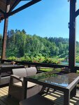 Вокруг отличная территория, верёвочный парк, пруд с рыбой, рядом склонны с подъемниками (да, летом поднимают велосипедистов), вейкборд, волейбольная площадка. Ресторан интересен, есть детская комната (первый этаж, так что не мешает посетителям на втором этаже). Но вот еда разочаровывает. Да, предупредили, что "меню экспериментальное, может быть задержка с подачей", но это не оправдывает того, что картофельные шарики, которые подрались с уткой, были холодными. При этом не просто комнатной температуры, а, похоже, из холодильника. Подозреваю, что должны были разогреть в микроволновке, Но и это забыли сделать. Запечённая форель была вполне, но соусы подкачали. Итого, территория интересна, можно хорошо провести время, еда же посредственная и откровенно не стоит своих денег.
