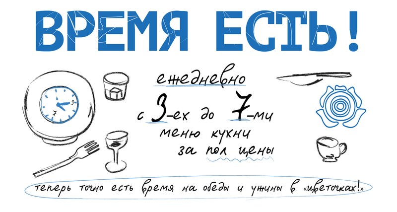 Время есть! Скидка 50% на меню кухни с 15:00 до 19:00 каждый день!
