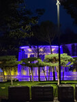 Красивый фонтанчик и бассейн очень необычно подсвечены.