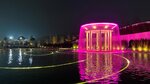 Вечером фонтан светится, красивое место, рядом идет стройка, ожидается множество новых проектов в парке