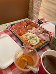 Замечательно пиццерия которая подает пиццу по кусочкам. Можно заказать одну пиццу из четырёх разных кусочков которые вам могут ещё поделить пополам итого восемь кусочков очень сытно и очень вкусной пиццы.