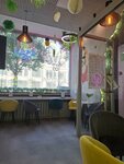 Молочный чай с голубикой не берите. Невкусно, тапиока переваренная, вкус чересчур приторный, ягодных нот нет вообще, чай тоже не чувствуется. Атмосфера приятная, есть розетки. Может быть другие позиции лучше, но голубику точно не берите.