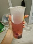 Была за час до закрытия, зал очень чистый. На столах, никакой грязи, бар чистый. Девушка за баром приветливая, предложила консультацию сразу, подробно рассказывала о напитке и топпингах. Напиток брала роза личи с доп классической тапиокой. Очень вкусный, не приторный, чувствуется вкус розы. Стаканчик выдали чистый, с хорошо приклееной плёнкой. Есть скидки для студентов, что очень приятно, скидку пробили по пропуску в вуз.
