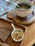 В наличии не оказалось вареников с картошкой, с картошкой и грибами, за которыми пришли дети😔, в меню нет описания состава блюда, так, борщ оказался со свининой, которую не ем, конечно нужно было самой уточнять состав, но по хорошему, он должен быть написан в меню.