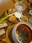 Потрясающе ютная обстановка. Были компанией за столиком в углу, вроде в ресторане, а в тот же момент как уединенно, понравился этот момент. Вкусные блюда,все наелись, понравились настойки. Придем еще❤️
