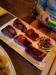 Одна звезда за интерьер. Ну нельзя так над мясом издеваться! Из компании в 9 человек горячее не доел никто, большинство даже не притронулись. Семга сухая и пересоленная, шашлык (ребра) такой же. Стейки... Ну, не являются эти куски мороженного-перемороженного мяса стейком! На фото рибай прожарки медиум. Думаю, всё понятно. А запах от несвежих досок... мммм. Кто не верит, сами сходите, только предварительно что-то для живота примите обязательно.