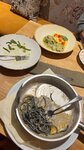 В целом место хорошее, приятная атмосфера. Вкусные блюда, жрали несколько раз сырный суп в хлебе и он был шикарный, но вот в сб были еще и снова его заказали и в он был более жидкий. Паста с красной рыбой и икрой на вкус так себе