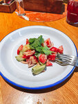 Гостеприимное местечко, еда очень сытная и веусная, брали шашлыки на шпажке,супчик куриный, хачапури, и салатик из фасоли. Очень большие порции не смогли доесть, также взяли морсик из черной смородины и капучино. Всё бысто принесли, без каких-либо задержек. Персонал отзывчивый и приветливый.