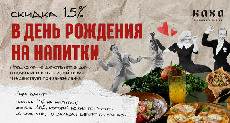 Именинникам скидка 15% на напитки, десерт и 20% кешбэк