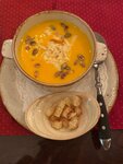 Уровень ресторана по ценнику. В целом еда вкусная. Соус к долме был очень жидким, возможно это греческий йогурт, но точно не сметана. Хинкали мне не понравились с ягненком, мясо с крупинками (в порции три штуки). Вкусный тыквенный суп (сладкий, на любителя). Чай с травами очень приятный по вкусу. Персонал вежливый, туалеты чистые: есть мыло, крем для рук. Для большой компании и проведения мероприятия очень приятное заведение.