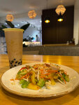 Проходила мимо, обратила внимание на плакаты с акциями. Так как люблю вьетнамскую кухню, решила зайти и не прогадала. Прежде всего, хочется отметить привлекательную атмосферу ресторана: ремонт сделан со вкусом, неяркое освещение и есть живые растения. Тут уютно и комфортно. Изучив меню, я остановила выбор на салате Ном Соай и манговом Бабл Ти. Продукты свежие, особенно понравились сочные креветки в блюде и манго. Напиток тоже был насыщенным. Данное заведение однозначно рекомендую к посещению каждому. Цены здесь приятные. В скором времени зайду повторно, уже с компанией друзей