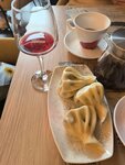 27 апреля в Москве резко похолодало, и так случилось, что в этот день я оказался на Мясницкой вдали от дома. Тело искало способа согреться, глаза искали вывеску, за которой крылись бы покой, расслабление, и по возможности вкусный согревающий чай. Таковым местом для меня оказось заведение «хинкали и вино», название, не требующее лишних пояснений. Заказал себе хачапури по-аджарски с розовыми помидорами, гранатовое вино, персиковый чай, хинкали с бараниной и ради эксперимента хинкали с вишней. Долго ддать не пришлось, хачапури понравилось, хлеб нежный, сочетание сыра, хлебяа и яйца, дополненное розовыми томатами, таким знакомым но в то же время новым. Гранатовое вино заставило забыть о течении времени (а надо было помнить, место для меня отвели на полтора часа), персиковый чай согрел и успокоил, а хинкали оказались в тот момент тем, чего не хватало как будто целую жизнь. Особенно понравились с вишней, вопреки всем заповедям я добавил в вишню ткемали, и без почти приторная вишня наполнилась нотками кислой алычи и душистой мяты, это сочетание просто добило меня в хорошем смысле слова! В общем, если кратко, рекомендую!