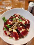 Впервые столкнулась с тем, что ресторан отказывает в подаче салата и заправки отдельно. Я беременна, у меня диабет, мне нельзя сахар, но нет, кто-то на кухне очень принципиальный. Менеджер вообще ни о чем, никак проблему решить не предложила. Меню не знает и сама замену подобрать не может, пришлось ждать старшего официанта для этого. Наш официант тоже ничего не знал про меню, постоянно переспрашивал и уточнял что все там написано. Еда по вкусу приемлемая, но ожидание в пустом ресторане конечно удивительное. Поели и побыстрее ушли, больше не вернёмся